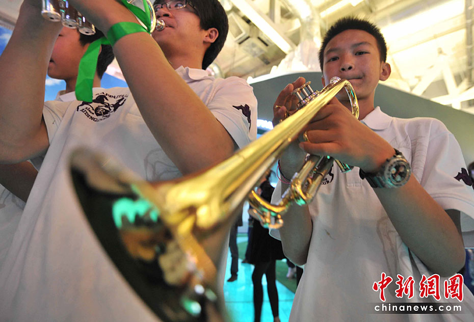 5月2日清晨,來(lái)自玉樹(shù)地震災(zāi)區(qū)結(jié)古鎮(zhèn)的藏族小樂(lè)手巴東珠,含著姐姐在地震中不幸遇難的悲痛心情,與小白楊中學(xué)生管弦樂(lè)團(tuán)來(lái)到上海世博會(huì),為中國(guó)青海館觀眾獻(xiàn)上一曲《在那遙遠(yuǎn)的地方》。他悲歡交融的情懷和演藝,感動(dòng)全場(chǎng)。巴東珠之前還是青海省人民醫(yī)院為地震傷員做藏語(yǔ)翻譯的志愿者。中新社記者 賈國(guó)榮 攝