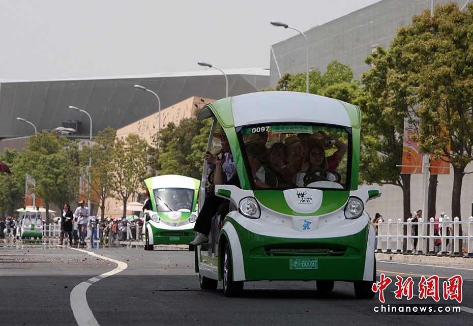 5月2日,上海世博會是第一個正式提出“低碳世博”理念的世博會,圍繞著這樣的理念,上海世博園區(qū)內(nèi)的低碳元素比比皆是。圖為世博園區(qū)有幾百輛零排放的燃料電池汽車向游客提供服務(wù)。中新社發(fā) 湯彥俊 攝