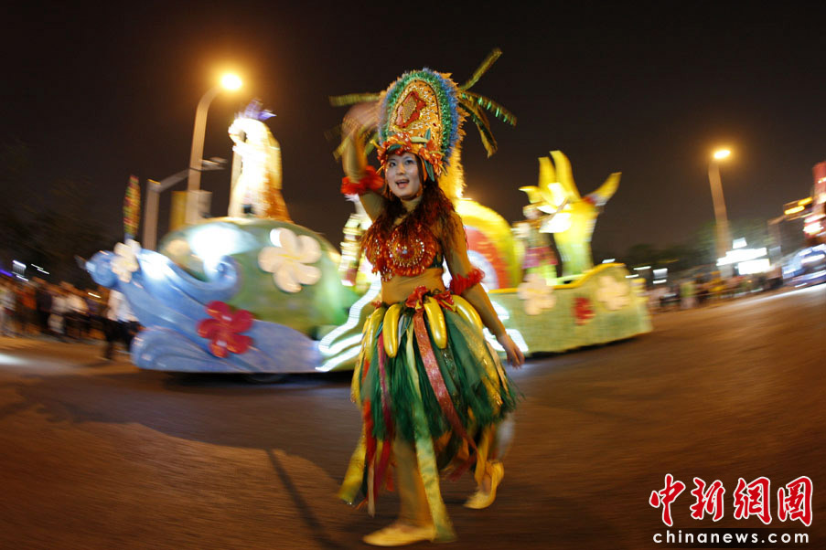 5月2日晚,由一輛輛充滿異域風(fēng)情的花車和身著盛裝的表演者組成的“歡樂盛裝大巡游”在世博園區(qū)舉行。中新網(wǎng)記者 盛佳鵬 攝