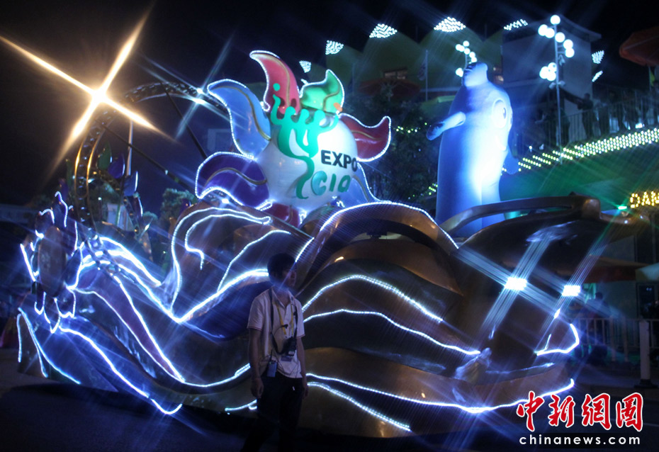 5月2日晚,由一輛輛充滿異域風(fēng)情的花車和身著盛裝的表演者組成的“歡樂盛裝大巡游”在世博園區(qū)舉行。中新網(wǎng)記者 蘇丹 攝