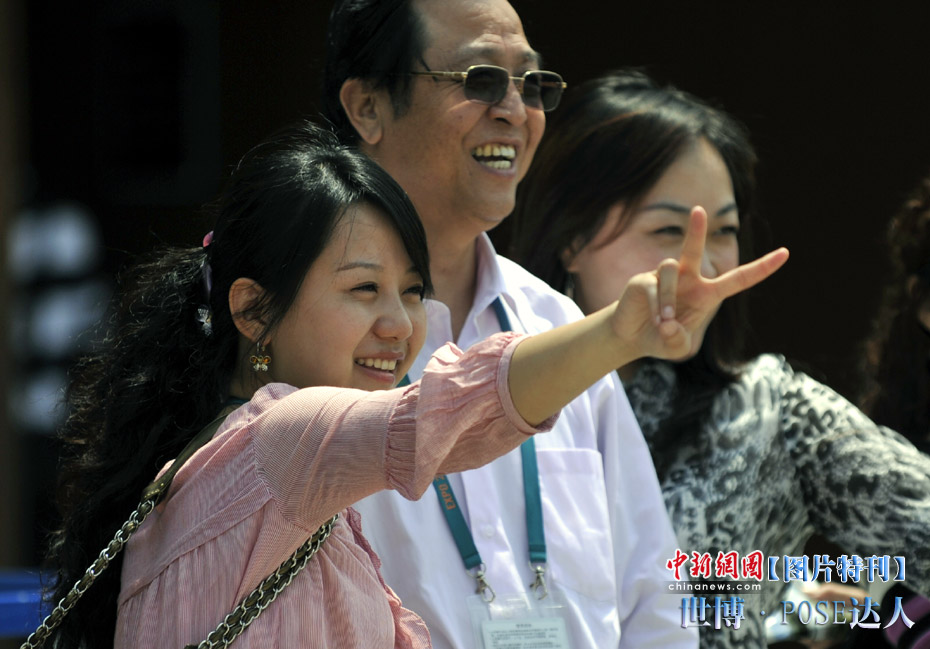 逛世博一定會(huì)拍照留念,擺一個(gè)漂亮有創(chuàng)意的pose尤為重要。面對(duì)著鏡頭,挺胸收腹翹臀,一個(gè)微笑,一個(gè)手勢(shì),秀出自己的活力。心中一定要默念:“我留下的不是照片,是心情!”巴西館外的一個(gè)女孩的勝利pose,這是最為普遍的造型設(shè)計(jì)。中新網(wǎng)記者 王紅綱 攝