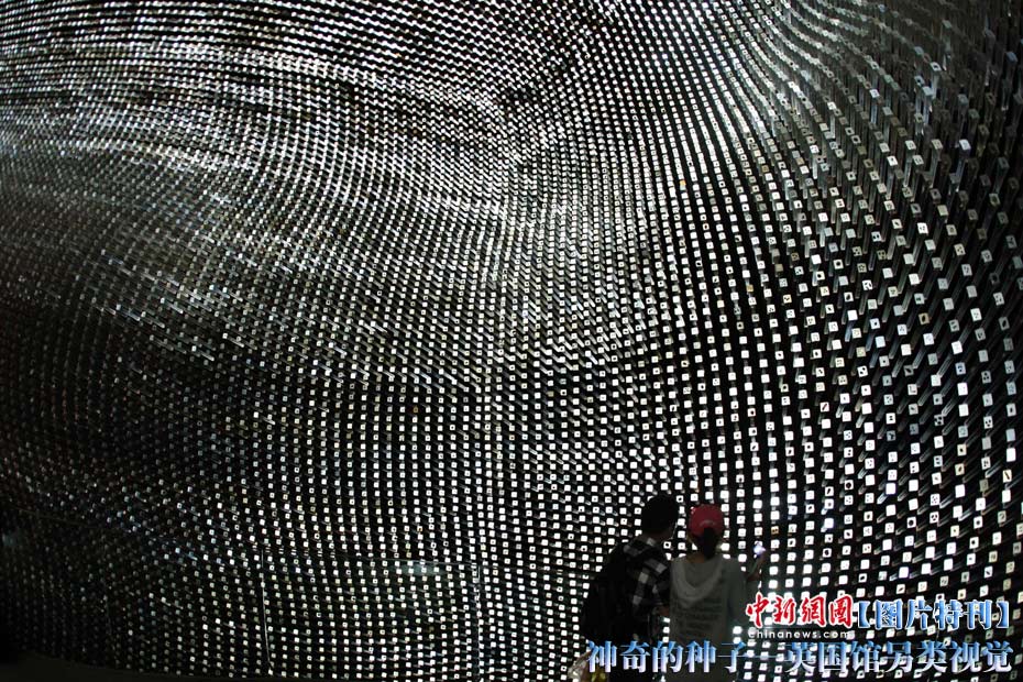上海世博園開園才數(shù)日,自號“種子圣殿”的英國館已成人氣最旺場館之一。該館由6萬根亞克力桿巧妙構成,隨風搖動,頗為新奇。其每根桿子里都含有植物種子。中新社記者 盛佳鵬 攝