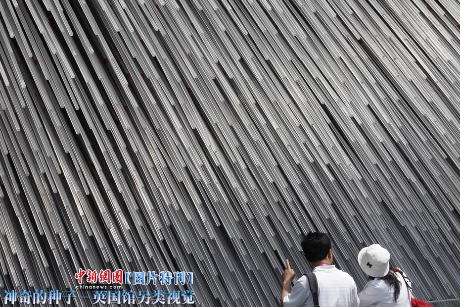 上海世博園開園才數(shù)日,自號(hào)“種子圣殿”的英國(guó)館已成人氣最旺場(chǎng)館之一。該館由6萬根亞克力桿巧妙構(gòu)成,隨風(fēng)搖動(dòng),頗為新奇。其每根桿子里都含有植物種子。中新社記者 盛佳鵬 攝