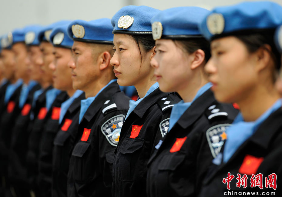 5月4日,中國第八支赴海地維和警察防暴隊全體隊員乘坐聯(lián)合國包機返回祖國。公安部副部長孟宏偉、政治部主任蔡安季前往機場迎接。 中新社發(fā) 劉震 攝