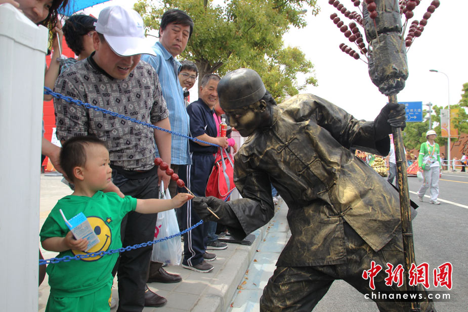 5月4日,上海世博會北京周花車巡游演員與觀眾互動。當日,世博會北京周開幕。中新社發(fā) 蘇丹 攝