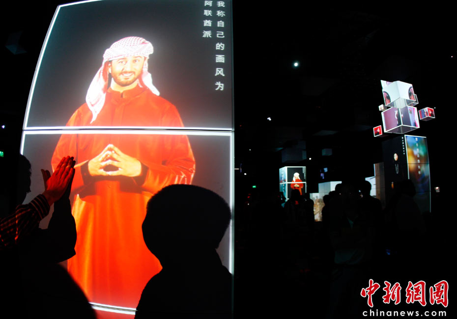 2010年5月4日,上海世博園區(qū)內(nèi)的阿聯(lián)酋館,虛擬解說(shuō)員為游客介紹阿聯(lián)酋的歷史、文化等。中新社發(fā) 盛佳鵬 攝