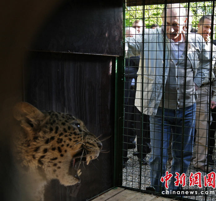 近日,俄羅斯總理普京來到2014年冬奧會舉辦地索契一家動物園,觀看一頭用東北虎換來的波斯豹。普京饒有興致地觀察了一會兒后,對這頭剛剛到來、還有些認(rèn)生的豹說:“別害怕,跑起來”,還向它做了個飛吻。此次從伊朗引進波斯母豹,是希望與本地的土庫曼尼斯坦公豹交配,以挽救這一瀕臨滅絕的物種。