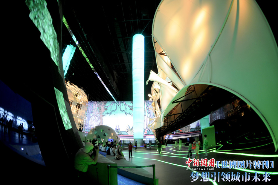 上海世博會(huì)城市未來(lái)館位于E片區(qū),館內(nèi)的展示以互動(dòng)方式開(kāi)始,邀請(qǐng)參觀者暢想未來(lái)的城市,然后運(yùn)用影片、書(shū)籍和雕塑等方式,體現(xiàn)歷史上人們對(duì)未來(lái)城市的夢(mèng)想、設(shè)計(jì)與實(shí)踐,表明未來(lái)城市建立在今日挑戰(zhàn)的基礎(chǔ)上,并且暢想未來(lái)城市的各種可能,闡述推動(dòng)人類(lèi)進(jìn)步永恒不變的精神元素。展望未來(lái)城市,一方面人類(lèi)城市的種種現(xiàn)實(shí)、挑戰(zhàn)和危機(jī)推動(dòng)人們?cè)谒伎贾袑ふ页鞘械某雎,另一方面人?lèi)不懈的創(chuàng)新能力和科技的飛速進(jìn)步也把人們引向不可思議的未來(lái)城市。中新社記者 廖攀 攝
