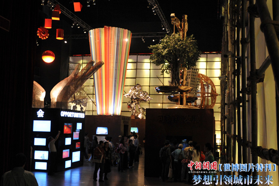 上海世博會(huì)城市未來(lái)館位于E片區(qū),館內(nèi)的展示以互動(dòng)方式開(kāi)始,邀請(qǐng)參觀者暢想未來(lái)的城市,然后運(yùn)用影片、書(shū)籍和雕塑等方式,體現(xiàn)歷史上人們對(duì)未來(lái)城市的夢(mèng)想、設(shè)計(jì)與實(shí)踐,表明未來(lái)城市建立在今日挑戰(zhàn)的基礎(chǔ)上,并且暢想未來(lái)城市的各種可能,闡述推動(dòng)人類進(jìn)步永恒不變的精神元素。展望未來(lái)城市,一方面人類城市的種種現(xiàn)實(shí)、挑戰(zhàn)和危機(jī)推動(dòng)人們?cè)谒伎贾袑ふ页鞘械某雎,另一方面人類不懈的?chuàng)新能力和科技的飛速進(jìn)步也把人們引向不可思議的未來(lái)城市。中新社記者 廖攀 攝