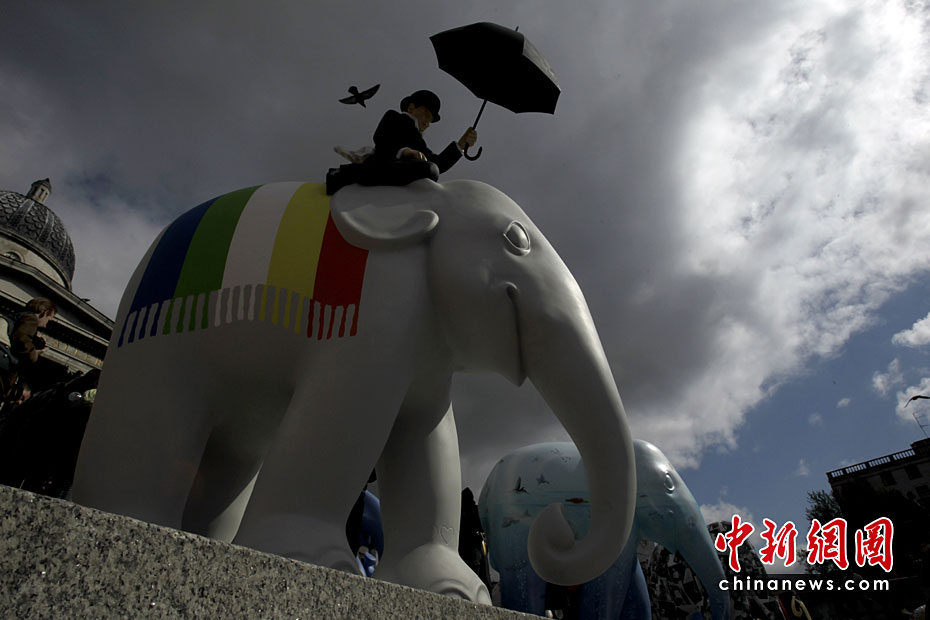 5月4日,2010年倫敦大象游行活動(dòng)當(dāng)日在特拉法爾加廣場(chǎng)啟動(dòng)。260個(gè)真象大小的彩繪雕塑將在倫敦各處展出,并將于6月30日拍賣為慈善組織籌款。圖片來源:中國(guó)新聞網(wǎng)