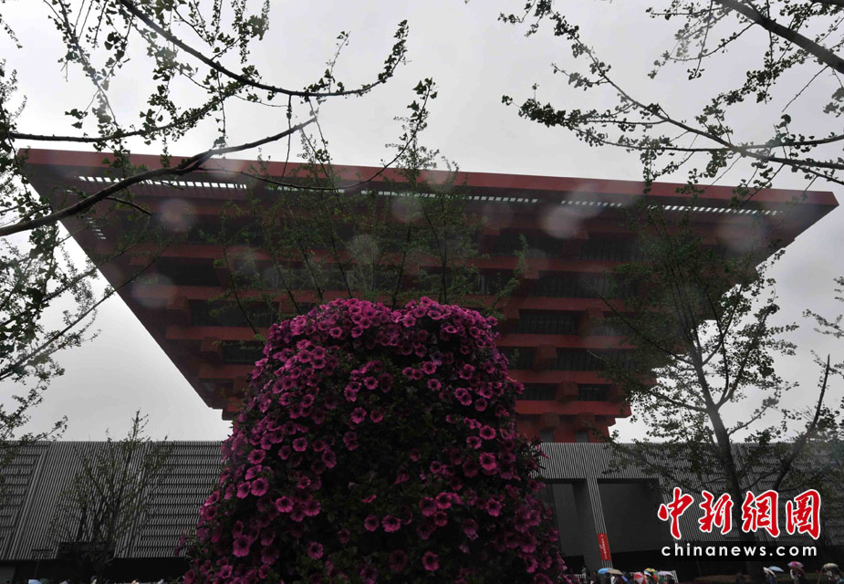 5月5日,上海世博會迎來開園五天來首個春雨天,雨中的中國館依然是游客參觀的最愛。中新社記者 賈國榮攝