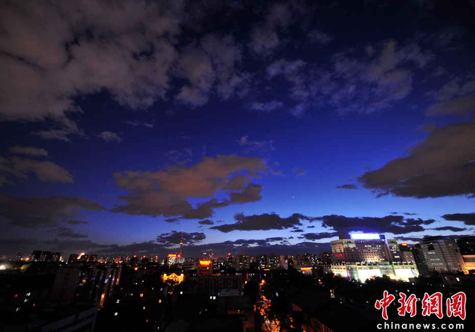 5月5日立夏,京城降雨今晨剛剛結(jié)束,霧氣伺機(jī)又起。傍晚時(shí)分,隨著四級(jí)北風(fēng)的到來,京城天氣逐漸轉(zhuǎn)晴,霧氣慢慢消散天空彤云密布夜色瑰麗。中新網(wǎng)記者 金碩 攝