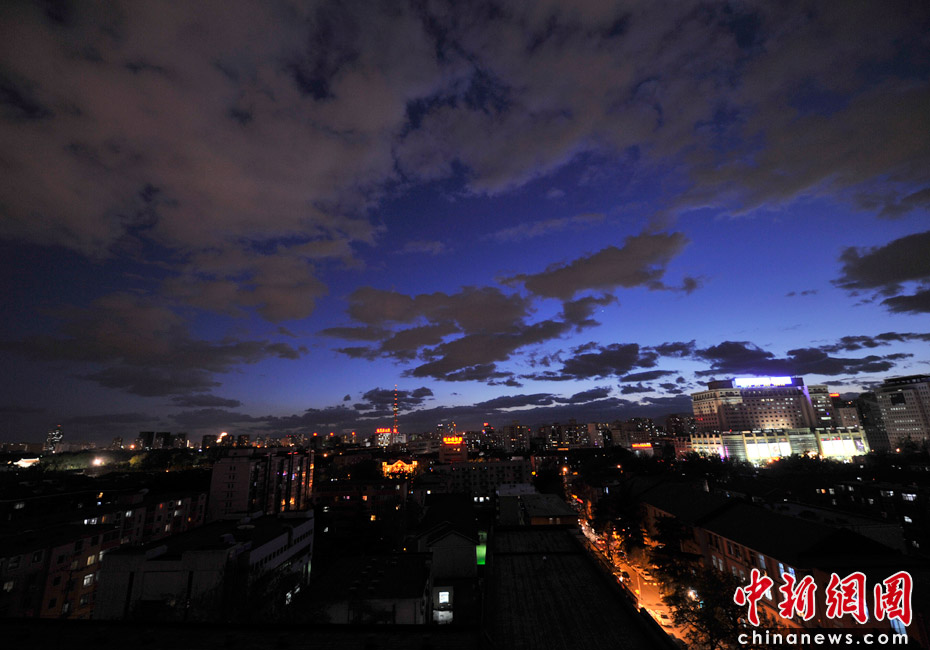 5月5日立夏,京城降雨今晨剛剛結(jié)束,霧氣伺機(jī)又起。傍晚時分,隨著四級北風(fēng)的到來,京城天氣逐漸轉(zhuǎn)晴,霧氣慢慢消散天空彤云密布夜色瑰麗。中新網(wǎng)記者 金碩 攝