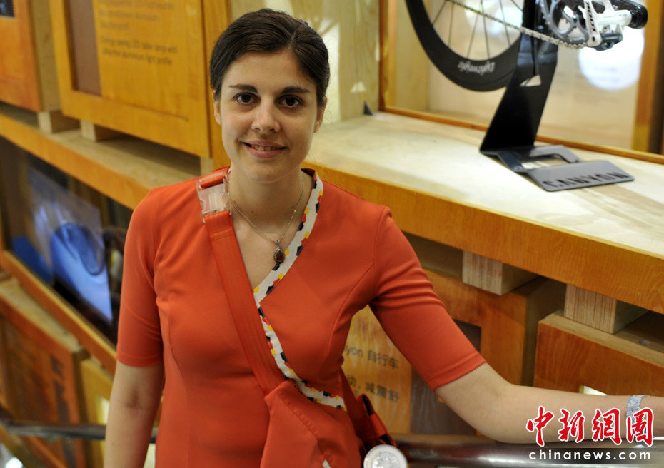 美麗的德國(guó)館工作人員,她們都能用一些簡(jiǎn)單的漢語與中國(guó)游客交流。中新網(wǎng)記者 王紅綱 攝
