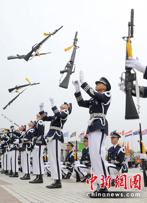 5月5日,韓國兒童節(jié),韓國突擊隊(duì)員在國家戰(zhàn)爭博物館為孩子們表演。