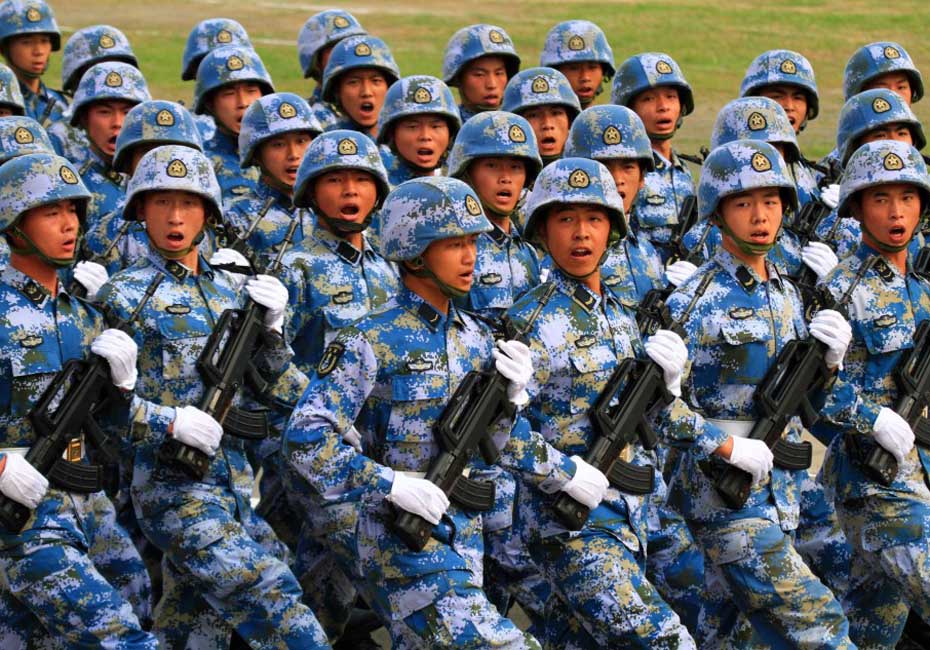 海軍陸戰(zhàn)隊(duì)員通過主席臺(tái)。圖片來源:新華網(wǎng) 查春明攝