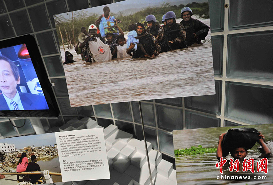 一所藍(lán)色的簡樸平房,在5月開園的上海世博會大道邊上,極不顯眼。但是,聯(lián)合國聯(lián)合館的鮮明會標(biāo),特別吸引人。這個展館集中了世界衛(wèi)生組織、世界銀行和聯(lián)合國的兒童基金會、糧農(nóng)組織、教科文組織等22個機(jī)構(gòu)。圖片來源:中國新聞網(wǎng) 賈國榮 攝