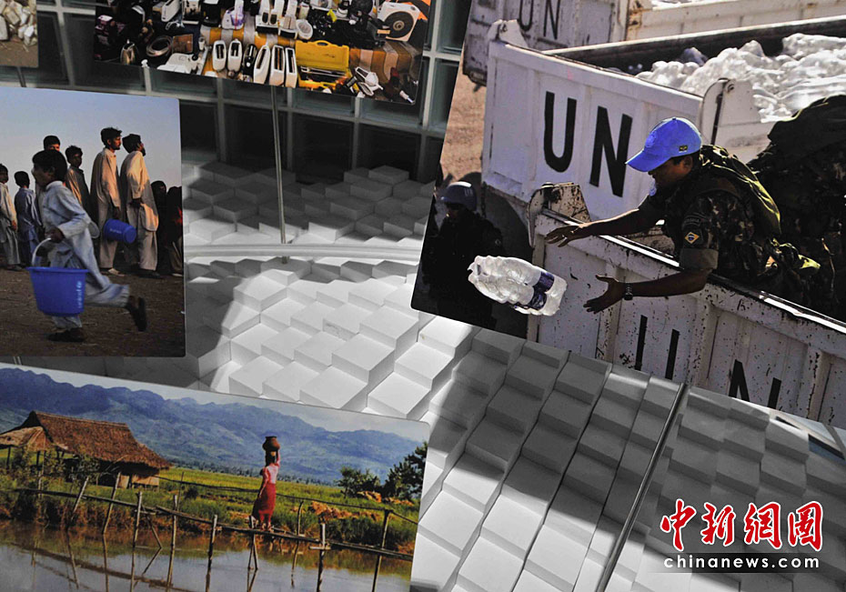 一所藍(lán)色的簡(jiǎn)樸平房,在5月開園的上海世博會(huì)大道邊上,極不顯眼。但是,聯(lián)合國聯(lián)合館的鮮明會(huì)標(biāo),特別吸引人。這個(gè)展館集中了世界衛(wèi)生組織、世界銀行和聯(lián)合國的兒童基金會(huì)、糧農(nóng)組織、教科文組織等22個(gè)機(jī)構(gòu)。圖片來源:中國新聞網(wǎng) 賈國榮 攝