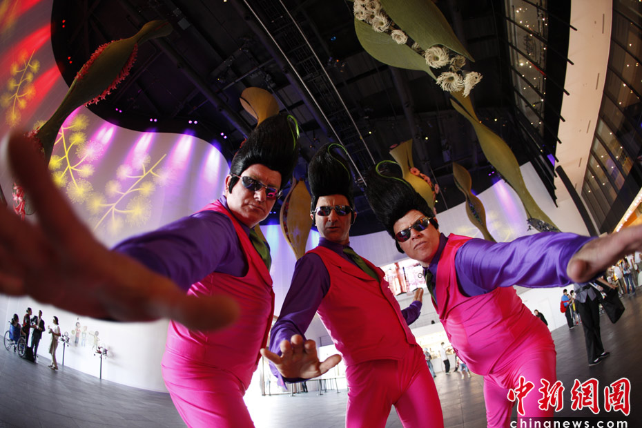 澳大利亞頂級(jí)街頭表演劇團(tuán)“鉻合金(Chrome)”在澳大利亞國(guó)家館閃亮登場(chǎng),他們以幽默風(fēng)趣的表演、優(yōu)美動(dòng)聽(tīng)的音樂(lè)和與觀眾之間的巧妙互動(dòng),吸引了參觀者的注意力。中新社記者 盛佳鵬 攝