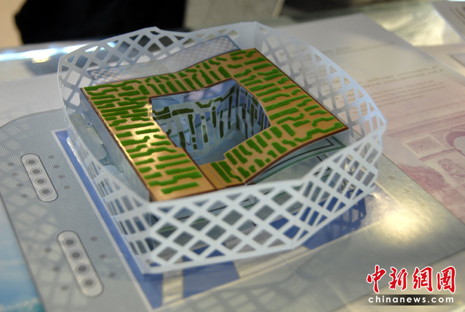 世博園區(qū)內(nèi)的特許商品店里,折紙場(chǎng)館惟妙惟肖,頗受游客的喜愛。圖為法國(guó)館紙模型。中新網(wǎng)記者 吳歆 攝