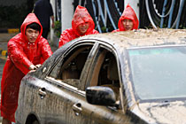 大雨致車庫汽車遭殃