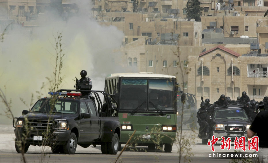 5月11日,約旦特種部隊(duì)在安曼空軍基地附近舉行演習(xí),為特種作戰(zhàn)部隊(duì)展覽會(huì)(SOFEX)開(kāi)幕式助興。該展覽會(huì)為期4天,展覽主題包括國(guó)家安全及反恐措施。圖片來(lái)源:中國(guó)新聞網(wǎng)