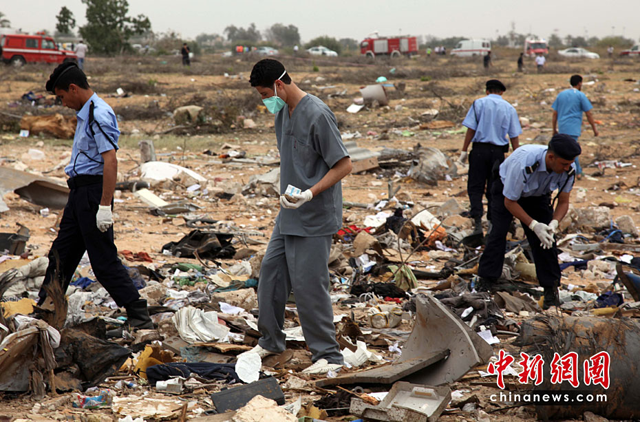 5月12日,一架從南非起飛的利比亞航班在利比亞首都的黎波里機(jī)場(chǎng)墜毀,機(jī)上103名乘客和機(jī)組人員遇難。圖片來源:中國新聞網(wǎng)