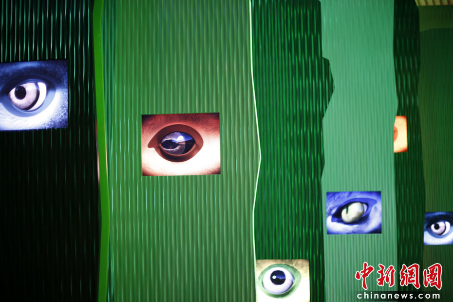 圖為盧森堡館內(nèi)的眼睛墻。 中新社記者 盛佳鵬 攝