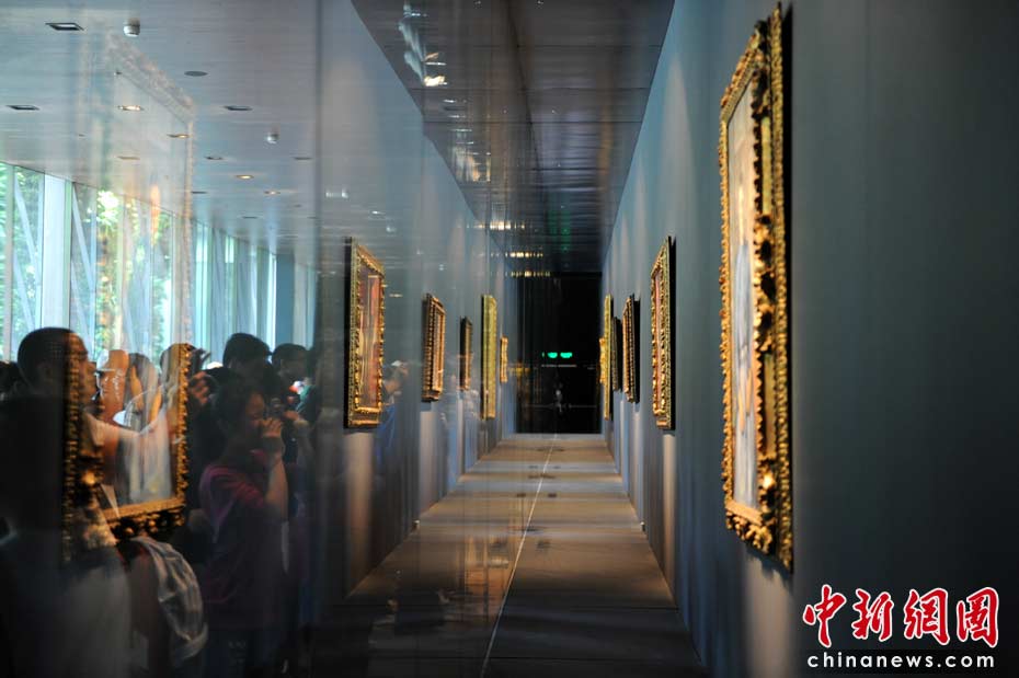 圖為法國館內(nèi)的國寶油畫。 中新社記者 廖攀 攝