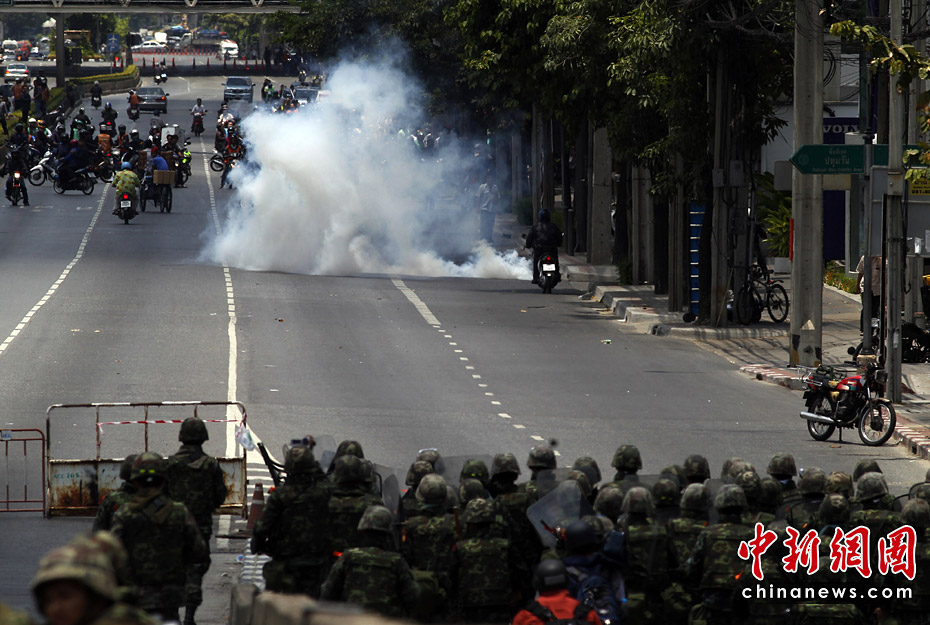 泰國(guó)政府軍和反政府示威者5月14日深夜在曼谷爆發(fā)嚴(yán)重暴力沖突。曼谷緊急醫(yī)療機(jī)構(gòu)15日稱,截止當(dāng)?shù)貢r(shí)間早晨6時(shí),沖突已導(dǎo)致16人死亡,至少141受傷,傷者中包括3名外國(guó)人。圖片來源:中國(guó)新聞網(wǎng)