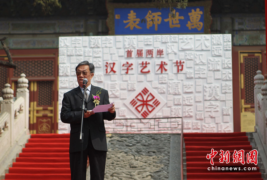 5月15日,首屆“兩岸漢字藝術(shù)節(jié)”新聞發(fā)布會(huì)在北京孔廟舉行。原文化部長(zhǎng)、著名作家王蒙與臺(tái)灣文化總會(huì)會(huì)長(zhǎng)劉兆玄等共同書(shū)寫漢字——“漢字藝術(shù)源遠(yuǎn)流長(zhǎng)”。 中新社發(fā) 蘇丹 攝