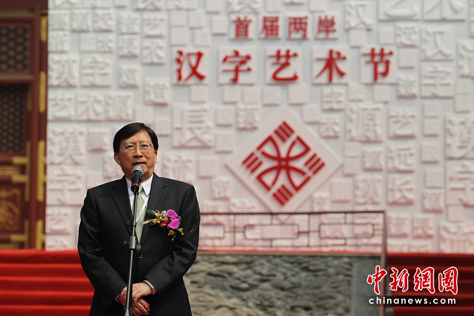 5月15日,首屆“兩岸漢字藝術(shù)節(jié)”新聞發(fā)布會(huì)在北京孔廟舉行。原文化部長(zhǎng)、著名作家王蒙與臺(tái)灣文化總會(huì)會(huì)長(zhǎng)劉兆玄等共同書(shū)寫漢字——“漢字藝術(shù)源遠(yuǎn)流長(zhǎng)”。 中新社發(fā) 蘇丹 攝