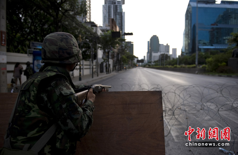 泰國(guó)軍隊(duì)和反政府的“紅衫軍”16日繼續(xù)在曼谷的多處地點(diǎn)對(duì)峙,槍聲和爆炸聲不時(shí)響起,曼谷的部分街道已成為“戰(zhàn)區(qū)”。泰國(guó)急救醫(yī)療部門(mén)17日表示,泰國(guó)軍警與反政府“紅衫軍”示威民眾3天來(lái)在曼谷街頭爆發(fā)的沖突,死亡人數(shù)已經(jīng)上升到35人。圖片來(lái)源:中國(guó)新聞網(wǎng)