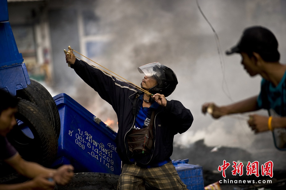 泰國(guó)軍隊(duì)和反政府的“紅衫軍”16日繼續(xù)在曼谷的多處地點(diǎn)對(duì)峙,槍聲和爆炸聲不時(shí)響起,曼谷的部分街道已成為“戰(zhàn)區(qū)”。泰國(guó)急救醫(yī)療部門(mén)17日表示,泰國(guó)軍警與反政府“紅衫軍”示威民眾3天來(lái)在曼谷街頭爆發(fā)的沖突,死亡人數(shù)已經(jīng)上升到35人。圖片來(lái)源:中國(guó)新聞網(wǎng)