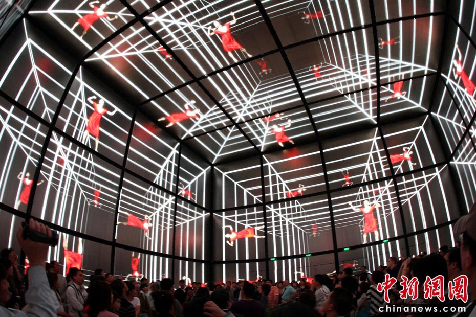 在世博會(huì)眾多的展館中,各類的大屏幕展示讓參觀者有如身臨其境,也讓游客們充分感受不同國(guó)家、不同地域的文化特色及先進(jìn)科技理念,如幻似夢(mèng)的屏幕光影也成為本次世博的最佳看點(diǎn)。圖為國(guó)家電網(wǎng)館。中新社記者 杜洋 攝