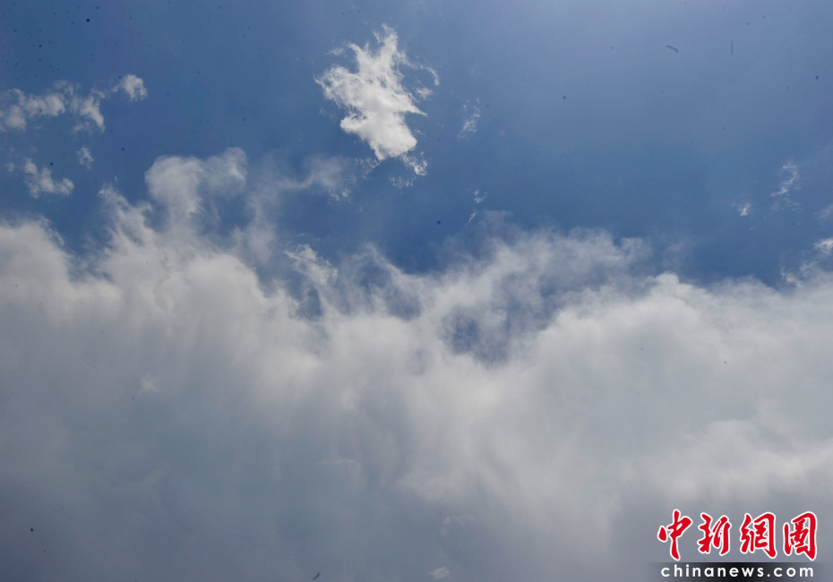 5月18日16時許,伴隨陣陣?yán)茁暰┏峭唤荡笥,降雨過后東部天空依然籠罩著烏云,而西邊卻已放晴。中新網(wǎng)記者 金碩 攝