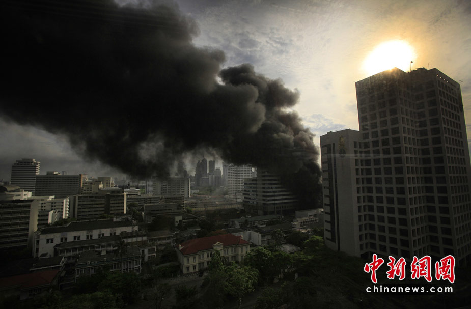 19日,發(fā)起驅(qū)散行動(dòng)的泰國軍方突破了反政府“紅衫軍”示威者在曼谷市中心所筑路障,進(jìn)入其營地內(nèi),雙方爆發(fā)槍戰(zhàn)。目擊者稱,已有至少9人受傷,多數(shù)是被槍擊中。 圖為“紅衫軍”成員在曼谷一所醫(yī)院附近集會(huì)并燃燒輪胎。