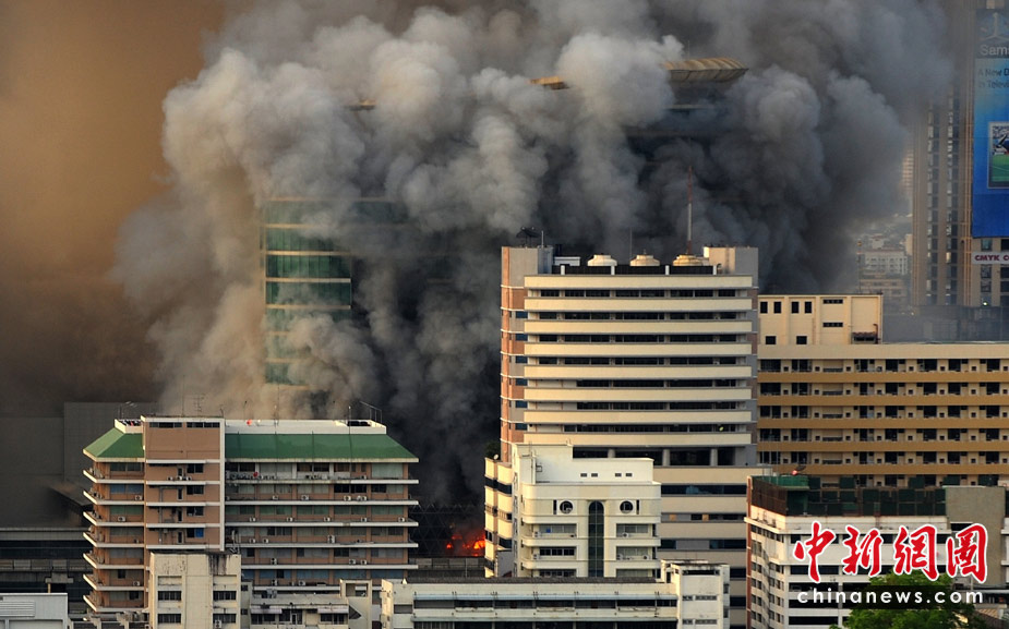 泰國軍方19日清場,希望將陷入內(nèi)戰(zhàn)邊緣的曼谷拯救出來,雖然紅衫軍節(jié)節(jié)敗退,但有激進(jìn)分子未肯罷休,四處放火,電視臺、股票交易所、電力公司、幾間銀行、商場戲院都遭殃,商場和便利店亦成為搶掠目標(biāo)。據(jù)報(bào)曼谷有27處地方起火,泰國最大的商場Central World、Siam Square和Siam Paragon三大購物中心被縱火,其中Central World燒通頂,據(jù)報(bào)快將倒塌。