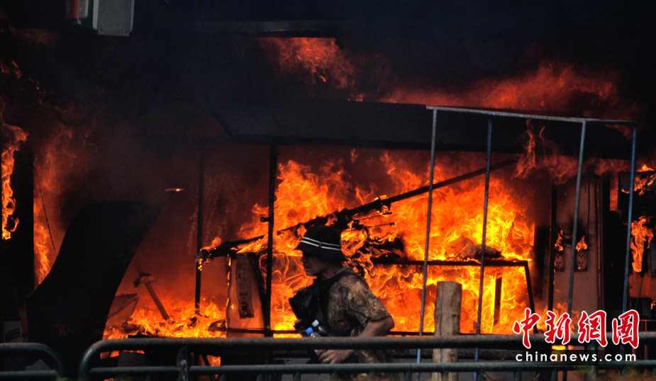 泰國軍方19日清場,希望將陷入內(nèi)戰(zhàn)邊緣的曼谷拯救出來,雖然紅衫軍節(jié)節(jié)敗退,但有激進分子未肯罷休,四處放火,電視臺、股票交易所、電力公司、幾間銀行、商場戲院都遭殃,商場和便利店亦成為搶掠目標。據(jù)報曼谷有27處地方起火,泰國最大的商場Central World、Siam Square和Siam Paragon三大購物中心被縱火,其中Central World燒通頂,據(jù)報快將倒塌。