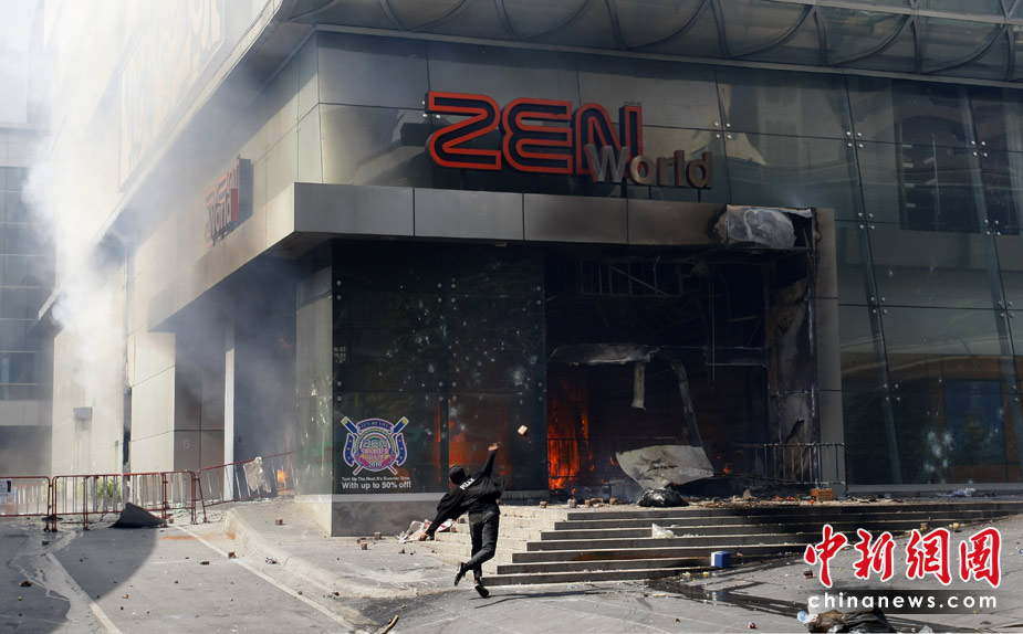 泰國軍方19日清場,希望將陷入內(nèi)戰(zhàn)邊緣的曼谷拯救出來,雖然紅衫軍節(jié)節(jié)敗退,但有激進分子未肯罷休,四處放火,電視臺、股票交易所、電力公司、幾間銀行、商場戲院都遭殃,商場和便利店亦成為搶掠目標。據(jù)報曼谷有27處地方起火,泰國最大的商場Central World、Siam Square和Siam Paragon三大購物中心被縱火,其中Central World燒通頂,據(jù)報快將倒塌。