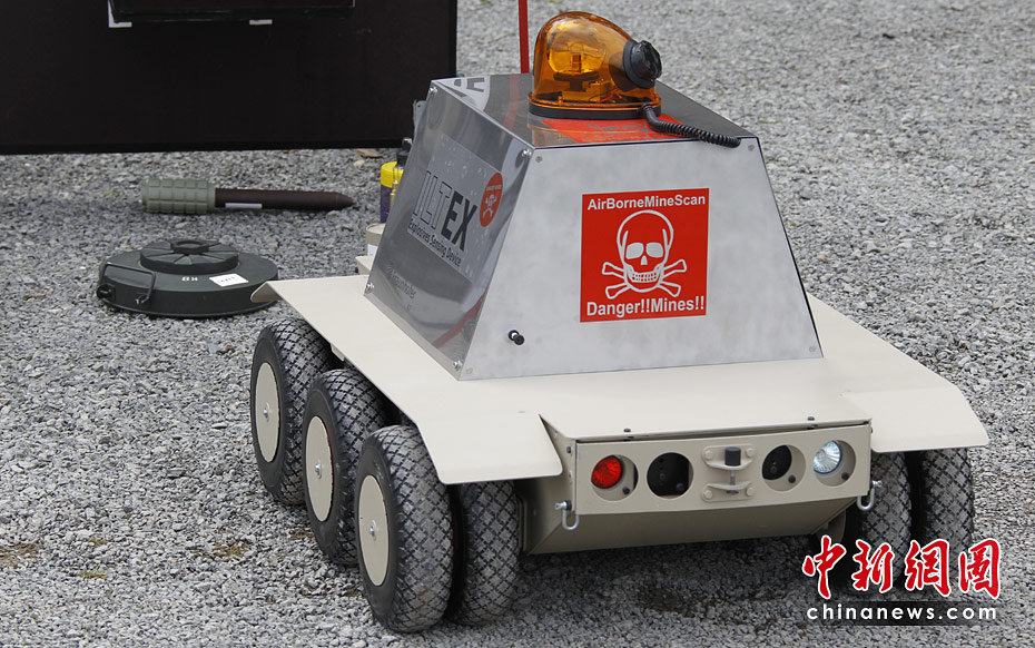 當(dāng)?shù)貢r(shí)間5月18日,德國(guó)南部哈默爾堡舉行了歐洲軍用機(jī)器人大賽。歐洲各國(guó)軍用機(jī)器人在大賽上一展身手。圖片來(lái)源:中國(guó)新聞網(wǎng)