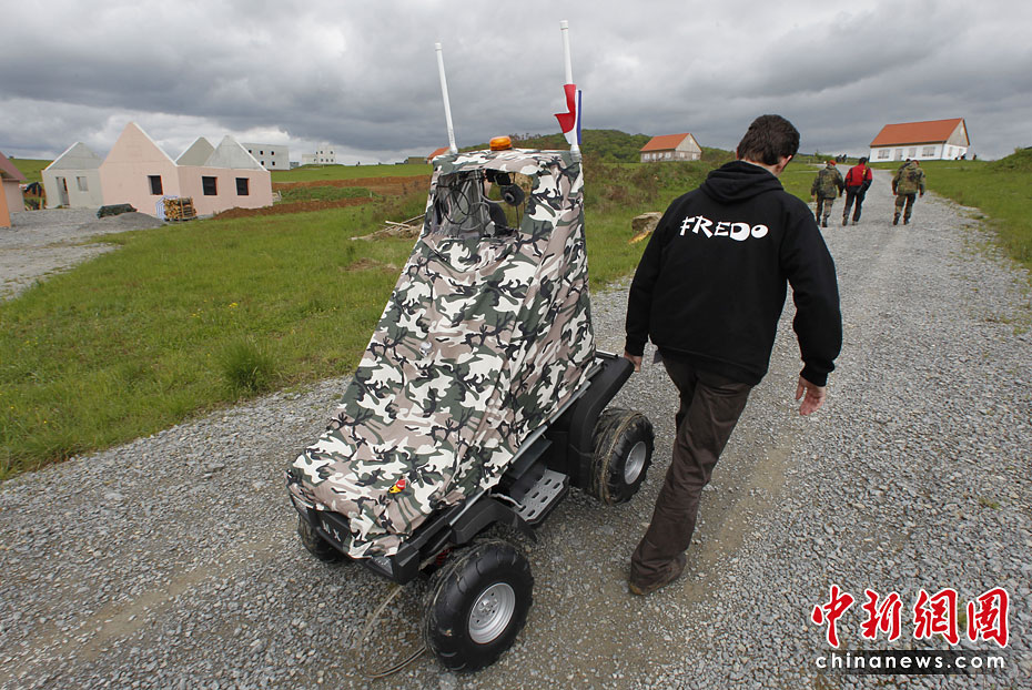 當(dāng)?shù)貢r間5月18日,德國南部哈默爾堡舉行了歐洲軍用機器人大賽。歐洲各國軍用機器人在大賽上一展身手。圖片來源:中國新聞網(wǎng)