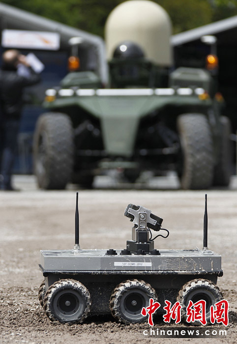 當(dāng)?shù)貢r(shí)間5月18日,德國南部哈默爾堡舉行了歐洲軍用機(jī)器人大賽。歐洲各國軍用機(jī)器人在大賽上一展身手。圖片來源:中國新聞網(wǎng)