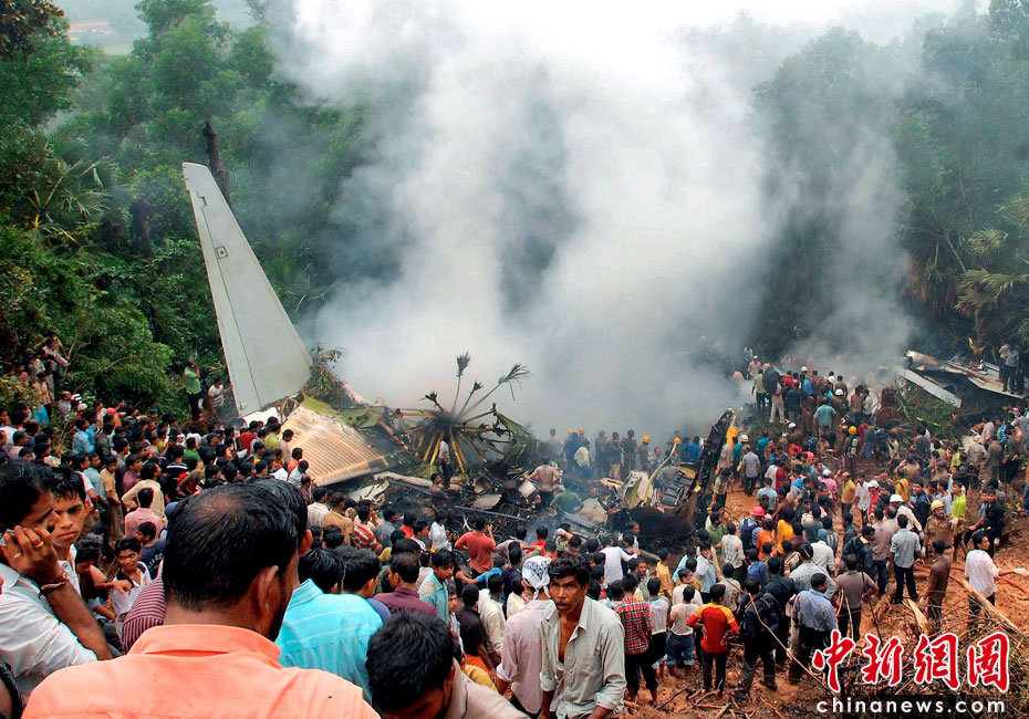5月22日,印度一架客機在南部卡納塔克邦門格洛爾市降落時失事,造成至少160人喪生。目擊者稱,當(dāng)天早上6點左右,這架飛機準備在馬拉格爾機場降落,但不知何故沖出跑道然后一頭扎到機場附近的叢林中起火爆炸。圖片來源:中國新聞網(wǎng)