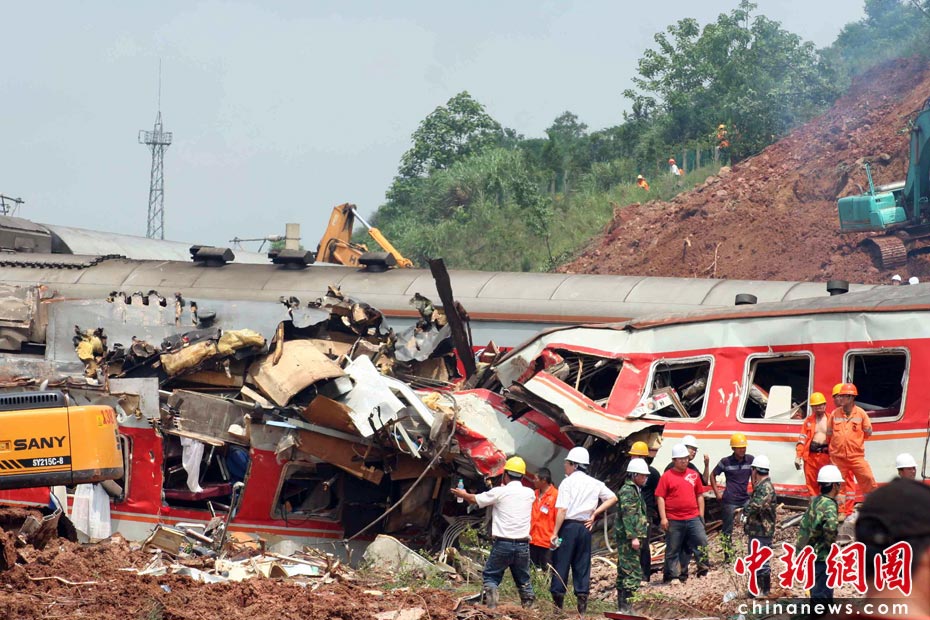 中新網(wǎng)東鄉(xiāng)5月23日電(艾永全 何柳斌 劉占昆)23日下午14時(shí),距離滬昆鐵路客運(yùn)列車脫線事發(fā)已經(jīng)12小時(shí),武警、消防、醫(yī)護(hù)、交警、特警仍在事故現(xiàn)場(chǎng)緊急救援。 艾永全 攝