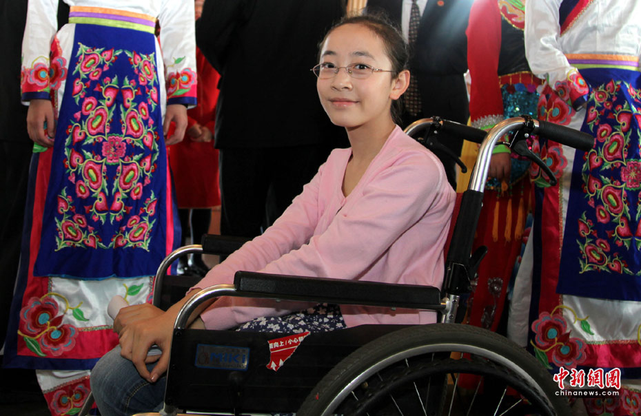 5月24日下午,“四川省感謝臺(tái)灣社會(huì)各界援助‘5.12’地震災(zāi)區(qū)見面會(huì)”在臺(tái)北舉行,汶川強(qiáng)震中失去一條腿的“芭蕾女孩”李月朗誦詩(shī)歌,向臺(tái)灣同胞致敬。 中新網(wǎng)記者 董會(huì)峰 攝