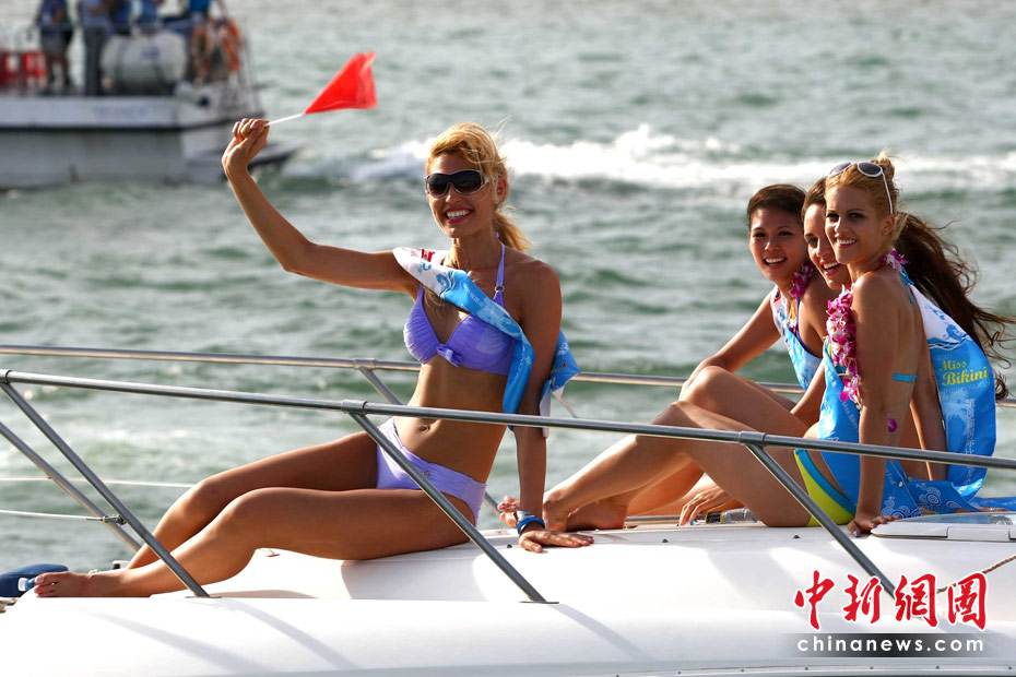 國際比基尼佳麗乘游艇暢游三亞