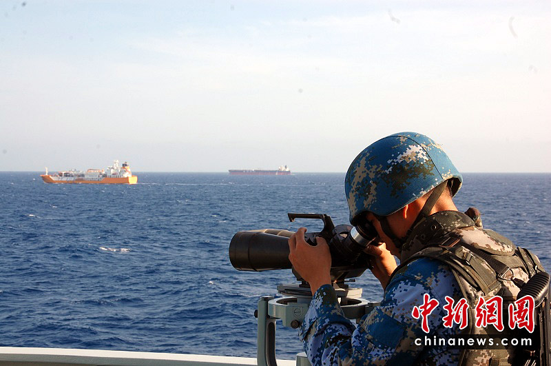 2009年1月29日,中國(guó)海軍首批護(hù)航編隊(duì)“武漢”艦收到希臘商船“ELENI G”號(hào)發(fā)出的緊急呼救。編隊(duì)立即派直升機(jī)載著特戰(zhàn)隊(duì)員前往救援,發(fā)現(xiàn)3艘海盜快艇正從不同方向圍攻希臘商船。特戰(zhàn)隊(duì)員發(fā)射信號(hào)彈,成功將其解救。船長(zhǎng)激動(dòng)的說(shuō):“感謝上帝!感謝中國(guó)海軍!”