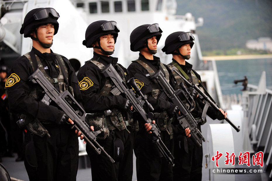 為了更好的進行威懾海盜,特戰(zhàn)隊員攜帶了多種輕武器。江山 攝