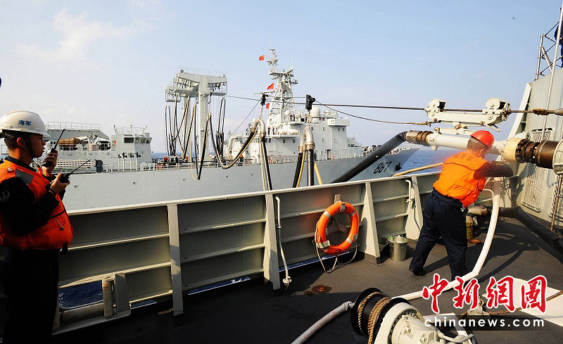 3月12日,在阿拉伯海上進(jìn)行第二次補(bǔ)給。江山 攝